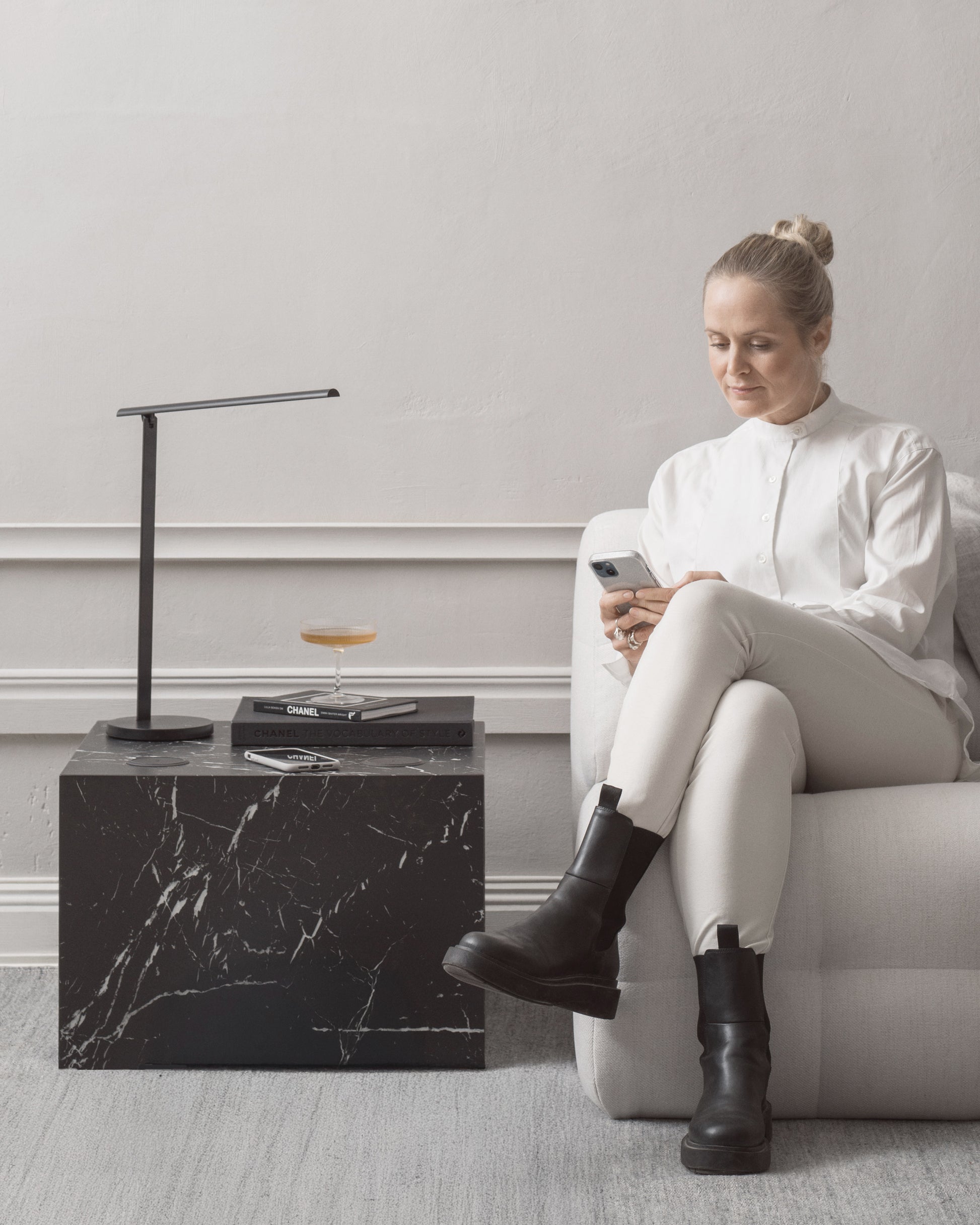 Angle Lamp 01 is a stylish and flexible lamp that fits in all types of environments. With five brightness levels to choose from and a timeless, elegant design, you get a lot of design for your money. The lamp's arm can also be adjusted from 0 to 130 degrees to get just the right angle for the moment. It is also easy to charge your mobile phone in the USB socket in the lamp base. The lamp automatically switches off after four hours of use using an Eco timer.