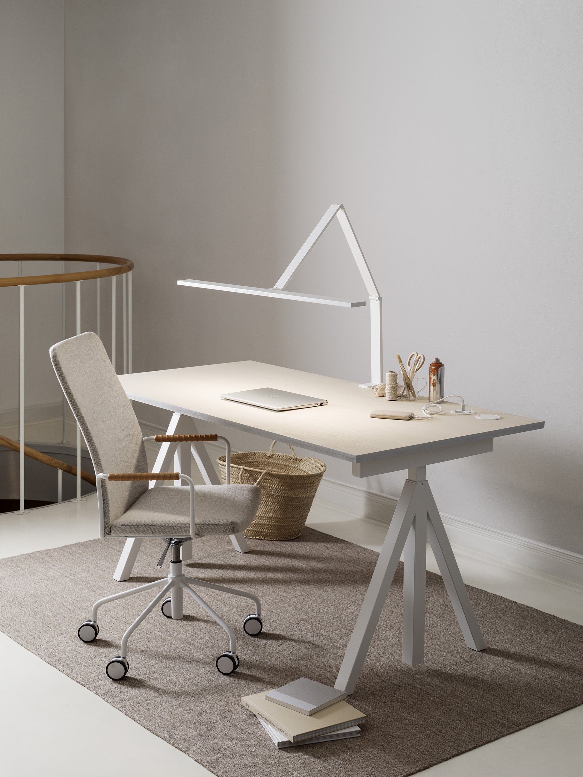 Lamp 02 was born from the idea of creating beautiful and innovative lighting for modern workplaces. We set out to invent a lamp with all the functions of traditional ceiling and table lighting, but in an innovative way. Lamp 02 spreads the light evenly over your workspace, is easy to adjust and frees up your table space. We wanted to revolutionize office lighting – Lamp 02 was the result.